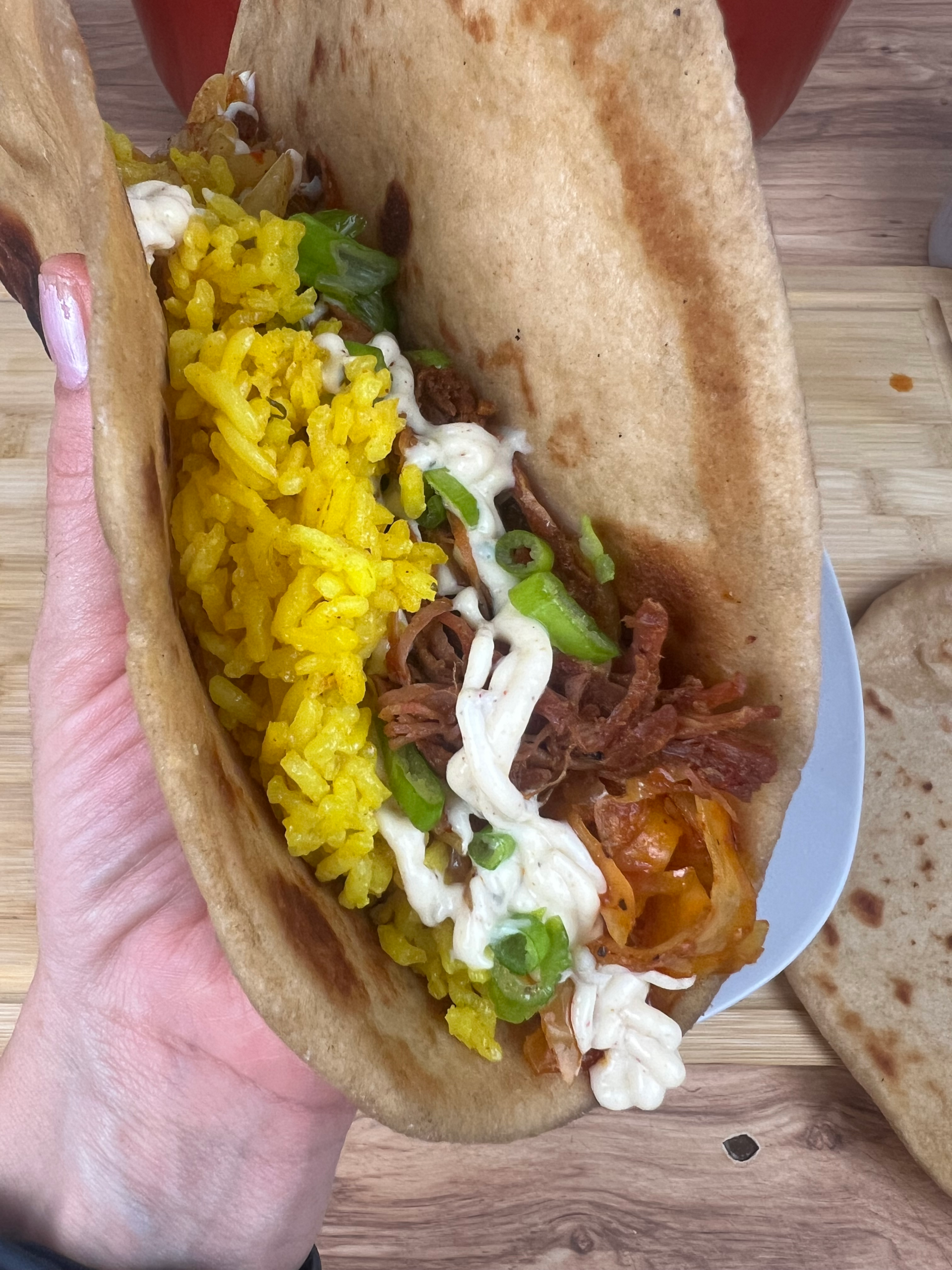 Birria-Style Ham Naan Tacos