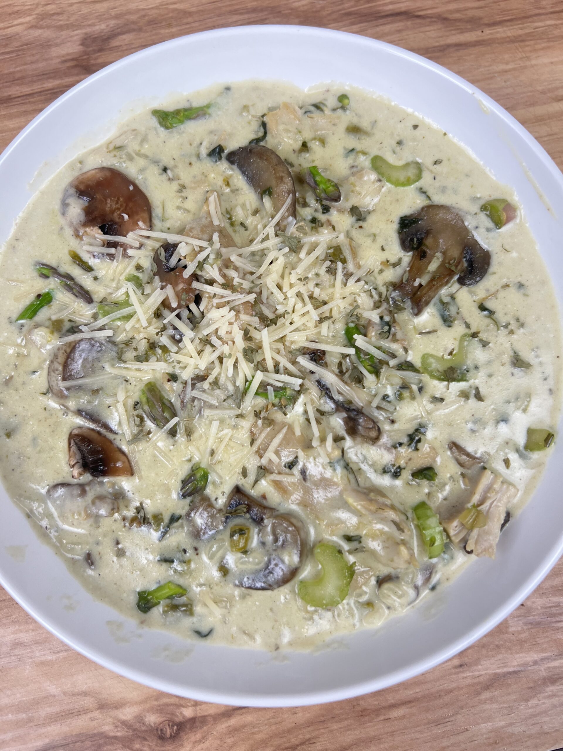 Creamy Chicken, Mushroom & Asparagus Rice Soup
