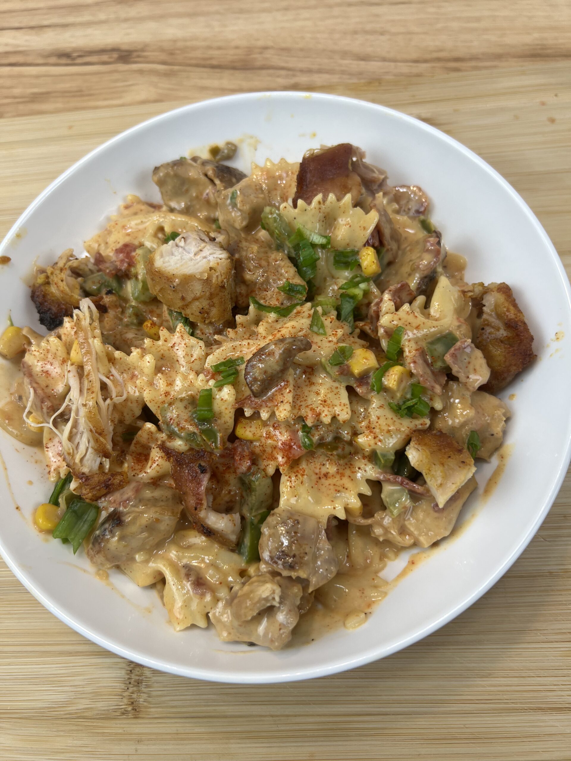 Creamy Cowboy Chicken Pasta with Bacon, Corn & Peppers (Easy Skillet Recipe)